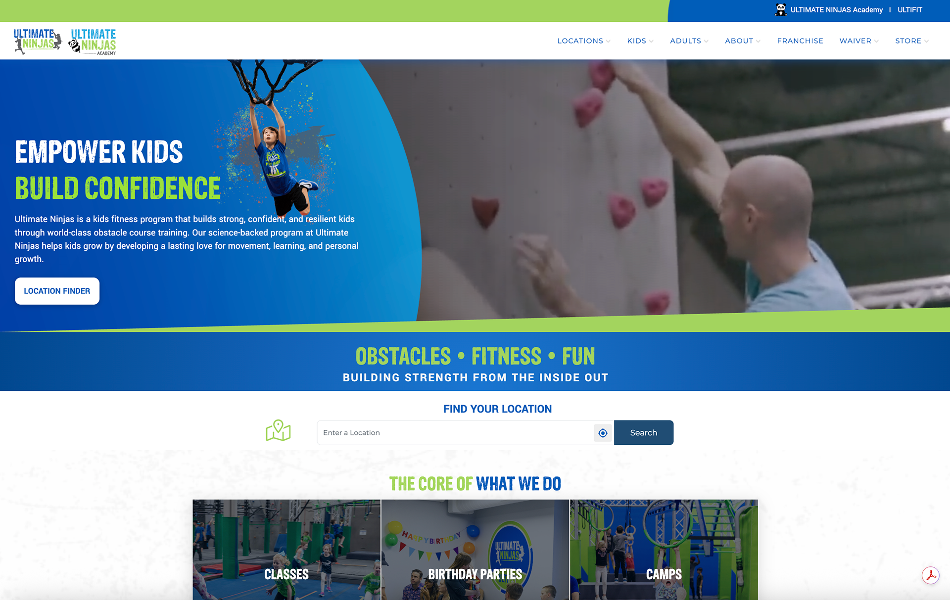 Client: Ultimate Ninjas - Fitness gym and event venue for adults and Kids.